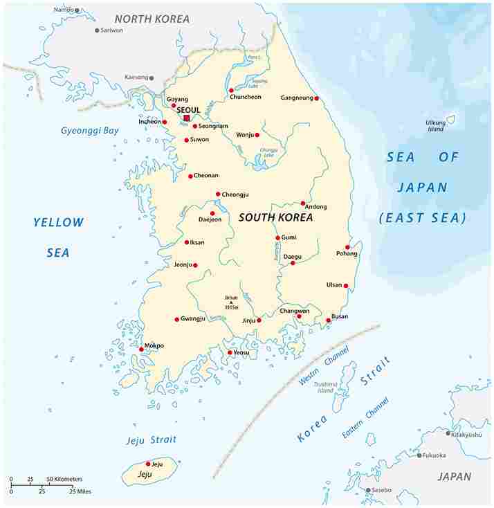 nombreuses baies et îles. La Corée du sud a une
