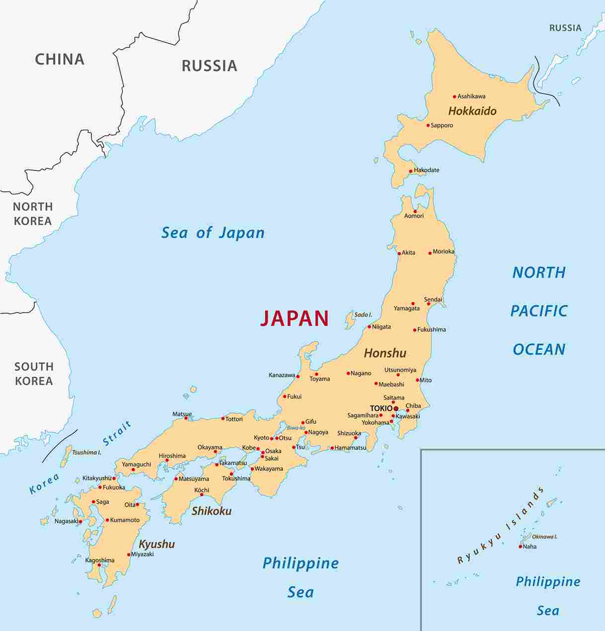 Le Japon est un État insulaire composé de quatre grandes îles principales et d’environ 4 000 plus petites îles. Les principales îles