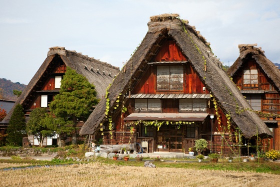 Les villages de Shirakawa-go et Gokayama sont célèbres pour leurs maisons de style traditionnel gassho. Ils se trouvent dans la région de Tokai-Hokuriku sur l’ile principale japonaise de Honshu. La zone fut progressivement habitée durant le 8e siècle, mais c’est seulement quelques centaines d’années plus tard que le village fut fondé. L’une des principales caractéristiques de ces maisons est leur toit raide. En 1995 ces villages ont étés inscrit à la liste des sites du patrimoine mondial de l’UNESCO.