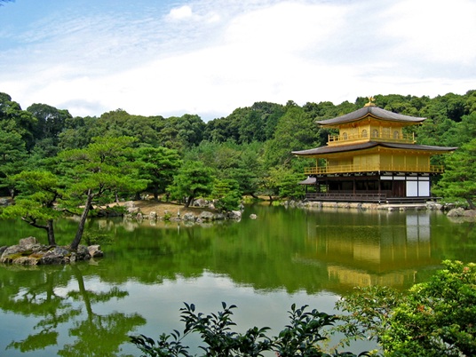 En plus de posséder un pavillon en or, le temple a une architecture originale et harmonieuse, puisque qu’il unit à la fois architecture chinoise et architecture japonaise. Le pavillon d’or de Kyoto est le centre spirituel des enseignements bouddhiques du Japon. Le temple est entouré d’un environnement naturel permettant une bonne harmonie entre l’homme et la nature.