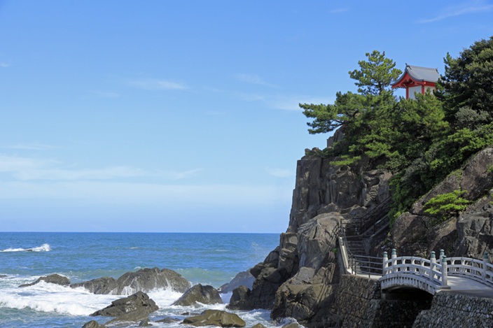 A quelques pas de la grotte, se trouve une plate forme sur lequel se trouvent plusieurs télescopes qui vous permettra d’observer le paysage sur 360 degré. En face de cette plate forme, il y a le sommet de la montagne où se dresse une statue de Nichiren, fondateur de la secte Nichiren du bouddhisme japonais. Un sentier vous mènera au pied de la statue. Près du terminal du ferry, vous observerez de magnifiques maisons traditionnelles en bois et de longues ruelles étroites comme si le temps s’était arrêté sur l’île. L’été, beaucoup de touriste japonais viennent ici pour profiter de la plage et de ses paysages.